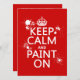 This reads Keep Calm and Paint On, in the style of the classic keep calm poster. There are splashes of paint all around the words. It''s a fun, bright design, which is perfect for both artists and decorators. Wonderful t-shirts for when you're decorating, or business cards for the professionals.