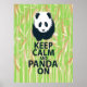 "Keep Calm and Panda On" is our unique poster print design, based on the parody of the famous Keep Calm and Carry on British slogan from the 1940's. This confident and cute Panda Bear is set in his favourite environment, a bamboo forest. Pandas eat a traditional diet made up of 99% bamboo!
