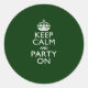 Keep Calm and Party On Classic Green Classic Round Sticker