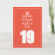 Keep calm and party on funny 19th Birthday card. Fun Keep Calm and Carry On meme for 19 year old. Make your own age specific quote with custom age number. Cute greeting card idea for teen boys or girls. Modern typography template with crown. Orange or custom colour. Personalise with message inside.