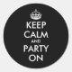 Keep calm and party on funny black wedding favour stickers and envelope seals. Customisable Keepcalm template with custom background colour. Vintage Keepcalmandcarryon theme. Create your own humourous keep calm and carry on parody.