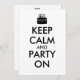 Make customised keep calm invitations with this template. It has an image of a cake with candles instead of the keep calm crown logo. It says Keep Calm and Party On.