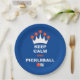 Keep Calm and Pickleball On, Blue Orange and White Paper Plate