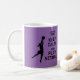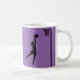Fun keep calm and play netball quote with netball player silhouette image on coffee mug. Also on t-shirt and gifts. Would make a great gift idea for a netball player or fan.
