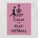 Goal shooter silhouette, keep calm and play netball custom postcard. Create your own personalised cards.