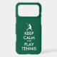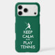 Keep Calm And Play Tennis funny green iPhone Case. Create your own sporty Keep calm and carry on parody. Customize background colors and text the way you want it.