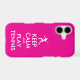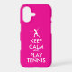 Keep Calm And Play Tennis funny neon pink iPhone Case. Create your own sporty Keep calm and carry on parody. Customize background colors and text the way you want it. Female silhouette.