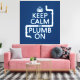 This reads Keep Calm and Plumb On, in the style of the classic keep calm poster. There is a pipe ringing from the top of the poster to the bottom. It's a really run different design, perfect for all plumbers and plumbing companies. Great promotional items, or gifts for those who love to plumb.