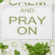 A play on the famous World War II poster, "Keep Calm and Stay Calm". The message "Keep Calm and Pray On" tells us the same thing in the face of our worries and fears, but reminds us that we can do something about the bad things that happen in the world. God hears our prayers and when we allow Him to work in our lives, things will always turn out right even though the road may be difficult. The Classic Spring Green Colour and Royal Crown give this message the vintage look of official royal decree.