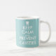 Keep Calm and prevent cavities mug for dentist office. Dentistry humour. Make your own spoof for your dental clinic. Personalizable Keep Calm Mug with custom colours like teal including white tooth logo. Create your own funny Keep Calm and Carry On parody. Simply edit the text of this template to make a unique design. Personalised mugs are a great gift idea for friends and family.