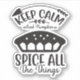 Add cosy fall vibes to your season with this playful "Keep Calm and Pumpkin Spice All The Things" sticker featuring a pumpkin spice pie graphic. Perfect for pumpkin spice lovers, autumn enthusiasts, and anyone who can’t get enough seasonal flavours. A fun gift for coffee drinkers, fall lifestyle fans, and Thanksgiving celebrations.