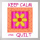 Show off your love of quilting with this fun and colourful quilt block proclaiming "Keep Calm and Quilt". This design is original quilt art with a colourful appliqué flower patchwork block. The word "quilt" is easy to change to another word of your choice. The quilt design is in vibrant and dynamic colours of orange, yellow and pink for a beautiful colour palette. Fully customisable to personalise. Quilt art is original art from fabric and quilt designer Phyllis Dobbs. This art is available on other products and in several colour backgrounds and is also available on more Keep Calm products with different quilt art. More products are available in Phyllis' BusinessWithFlair store.