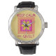 Show off your love of quilting with this fun and colourful quilt block proclaiming "Keep Calm and Quilt". This design is original quilt art with a colourful appliqué flower patchwork block. The word "quilt" is easy to change to another word of your choice. The quilt design is in vibrant and dynamic colours of orange, yellow and pink for a beautiful colour palette. Fully customisable to personalise. Quilt art is original art from fabric and quilt designer Phyllis Dobbs. This art is available on other products and in several colour backgrounds and is also available on more Keep Calm products with different quilt art. More products are available in Phyllis' BusinessWithFlair store.