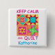 Show off your love of quilting with this fun and colourful name badge pin that you can wear to meetings and gatherings. This name badge pin with four block quilt has a design proclaiming "Keep Calm and Quilt". This design is original quilt art with favourite patchwork quilt blocks plus unique blocks. The word "quilt" is easy to change to another word of your choice. The quilt design is in vibrant and dynamic colours of orange, yellow, pink, turquoise, and lime green for a beautiful colour palette. Fully customisable to personalise. Quilt art is original art from fabric and quilt designer Phyllis Dobbs. This art is available on other products and in several colour backgrounds and is also available on more Keep Calm products with different quilt art. More products are a;sp available in Phyllis' BusinessWithFlair store.