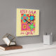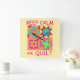 Show off your love of quilting with this fun and colourful wall clock. The design features a four block quilt design proclaiming "Keep Calm and Quilt"on a yellow background. This design is original quilt art with favourite patchwork quilt blocks plus unique blocks. The word "quilt" is easy to change to another word of your choice. The quilt design is in vibrant and dynamic colours of orange, yellow, pink, turquoise, and lime green for a beautiful colour palette. Fully customisable to personalise. Quilt art is original art from fabric and quilt designer Phyllis Dobbs. This art is available on other products and in several colour backgrounds and is also available on more Keep Calm products with different quilt art. More products are a;sp available in Phyllis' BusinessWithFlair store.