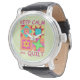 Show off your love of quilting with this fun and colourful wrist watch on a green background. This design features a four block quilt design proclaiming "Keep Calm and Quilt". This design is original quilt art with favourite patchwork quilt blocks plus unique blocks. The word "quilt" is easy to change to another word of your choice. The quilt design is in vibrant and dynamic colours of orange, yellow, pink, turquoise, and lime green for a beautiful colour palette. Fully customisable to personalise. Quilt art is original art from fabric and quilt designer Phyllis Dobbs. This art is available on other products and in several colour backgrounds and is also available on more Keep Calm products with different quilt art. More products are a;sp available in Phyllis' BusinessWithFlair store.
