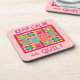 Enjoy entertaining while showing off your love of quilting with this fun and colourful quilt block proclaiming "Keep Calm and Quilt" coasters. This design is original quilt art and favourite patchwork quilt blocks plus unique blocks including log cabin, pinwheel, star, and square in a square blocks on a pink coral background. The word "quilt" is easy to change to another word of your choice. The quilt design is in vibrant and dynamic colours of orange, yellow, pink, turquoise, and lime green for a beautiful colour palette. Fully customisable to personalise. Quilt art is original art from fabric and quilt designer Phyllis Dobbs. This art is available on other products and in several colour backgrounds and is also available on more Keep Calm products with different quilt art. More products are available in Phyllis' BusinessWithFlair store.