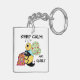 Enjoy using this fun and whimsy keychain with a "Keep Calm and Quilt" quilting bee. This colourful and whimsy yellow and black honey bee has light green wings, is wearing a turquoise blue scarf around her neck and is holding an orange, fuchsia pink and yellow quilt with pinwheel and lob cabin blocks. She has big eyes and a whimsy expression. This key chain will show off your love of quilting and bees. The words "Keep Calm and Quilt" are customisable and can be changed to your name, monogram, business name, or other words of your choice or deleted. This Quilting Bee is original art and is one of 12 bees by fabric designer and artist Phyllis Dobbs. All the bees are here on various products from tech products (phone cases, greeting cards, home products, business cards and many more). Phyllis can also customise her "Bee Yourself" bees for your needs. COLORS: yellow, black, pink, green, turquoise blue, fuchsia pink. Fully customisable.