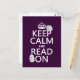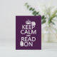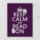 This reads Keep Calm and Read On, in the style of the classic keep calm poster. There are piles of books beside and on the words. This is a really popular design in my store, perfect for everyone who loves to read. It makes a great range of gifts for book lovers, readers and writers.