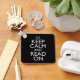 Keep Calm And Read On. Book lover accessory is a great gift for someone who loves books, reading, libraries, book shops and bookstores. Perfect for a librarian, book nerd or bibliophile. Are you a bookworm? Do you love to read literature and novels in a library or a used book store? Are you an insatiable reader? If you're a geek about books, this funny quote book lover design is for you!