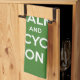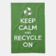An eco-friendly twist on a vintage WW2 British motivational poster in earth green with white text and recycle symbol.  Help raise awareness!