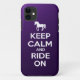 Keep Calm and ride on, a variation of keep calm carry on, in blue background and white text