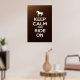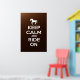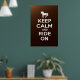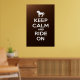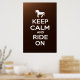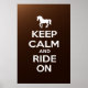 Keep calm and ride on product with white coloured text and dark background. A variation of Keep Calm and Carry On
