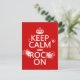 This reads Keep Calm and Rock On, in the style of the classic keep calm poster. The letters are decorated with grungy swirls. Perfect for the Rock God in your life.