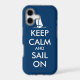 Keep calm and sail on iPhone 5 case | Nautical theme. Customisable cover. Create your own funny Keep calm and carry on parody. Customise navy blue background colours and text the way you want it. Sailboat / sailing ship design. Cute boating gift idea for men women and kids.