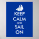 Keep calm and sail on poster | print with sailboat | Vintage WII slogan parody. Make your own spoof with the help of this Keep calm and carry on template. Background colour can be customisable from navy blue.