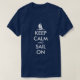 Keep calm and sail on t shirts | Nautical design with sailboat. Cute boating / sailing humour gift idea for men and women. Funny quote: Keep calm and sail on. Customisable maritime keepcalm parody. In navy blue and other colours.