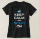 Keep Calm And Sci-Fi On. Funny sci-fi lover gift idea for a man, woman, teens or kids who love science fiction, outer space, rocket ships and exploring the universe, and is a scifi geek or nerd. Do you love science fiction books, sci-fi tv shows or sci-fi movies? If you’re a sci-fi fan, and have a sense of humour, then this design is perfect for you! Great to wear to a science fiction convention.