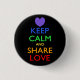 Celebrate pride with this fun design that spoofs the famous British propaganda phrase, which here reads "Keep Calm and Share Love" in the same poster-style all capital font. The words are in rainbow colours and the crown icon has been replaced by a purple heart. This cheerful design is great for spreading love among your community. Love is love.