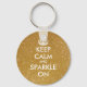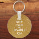 Keep calm and sparkle on gold glitter keychains. Customisable template with vintage keepcalm typography and crown. Personalise it with your own funny Keep calm and carry on parody quote. Faux golden background texture with sparkly sparkles and glittery glimmers. Cute motivational design for women and girls.