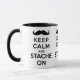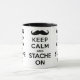 Keep calm and stache on black mug
