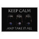 Keep calm and take it all. Closeup view of three overturned shot glasses with dices, tiles or dies inside each glass. Isolated against black background. Missing Impossible!