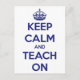 Keep Calm and Teach On Blue and White Postcard