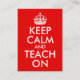 Red white customisable "Keep Calm and Teach On" parody design for teachers based on the classic poster. You can delete the contact information on back or change the font size and style.