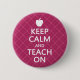 Keep Calm and Teach On, Pink Plaid 6 Cm Round Badge