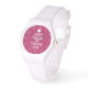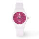 Pretty fuchsia magenta pink plaid background with white "keep calm and teach on" text, a fresh and feminine gift for the female teacher to provide motivation and inspiration from the classic "keep calm and carry on" British wwii propaganda.  A lovely teacher appreciation gift. Copyright © www.CuteComfy.com