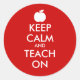 Keep calm and teach on stickers with apple icon. Customisable Keepcalm template with custom background colour and text. Teaching Keepcalmandcarryon theme. Create your own funny parody. Cute idea for teachers.