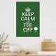 This is the classic Keep Calm poster reworded to Keep Calm and Tee Off. There is a silhouette of a golf ball on a tee next to the letters. It's a popular beautiful design, popular with all golf lovers. Makes great gifts for golfers, coaches, and fans alike.