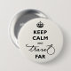 Customisable to any colour - 'Keep Calm And Travel Far' Stylish Handwriting Script Pin Button.
