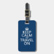 This reads Keep Calm and Travel On, in the style of the classic keep calm poster. It's a popular design, and makes great gifts for anyone setting off on their travels, whether taking a gap year, or the trip of a lifetime.