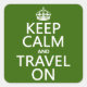 This reads Keep Calm and Travel On, in the style of the classic keep calm poster. It's a popular design, and makes great gifts for anyone setting off on their travels, whether taking a gap year, or the trip of a lifetime.