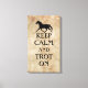 This stylish design is a parody of a vintage british WWII poster, guiding residents to "keep calm and carry on". It has text you can customise to say what you want with the image of a horse trotting. A great gift for horse lovers and animal lovers of all ages from hunter jumper horseback riders to dressage and country cowgirl and cowboy.