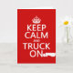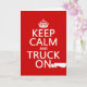 This reads Keep Calm and Truck On, in the style of the classic keep calm poster. There is a silhouette of a truck by the words. It's a beautiful design which makes great gifts for anyone who drives trucks and anyone who simply loves them.