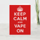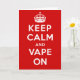 A vaper's funny rendition of the famous "Keep calm and carry on" World War II effort poster. The slogan is Keep Calm and Vape On and the colour is red. Vape on and be inspired, ecig lovers!