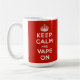 A vaper's funny rendition of the famous "Keep calm and carry on" World War II effort poster. The slogan is Keep Calm and Vape On and the colour is red. Vape on and be inspired, ecig lovers!