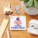 Keep Calm and Vote Democrat. A funny red, white, and blue democratic party keychain for your liberal friends with the Uncle Sam political hat on top of this cute quote. Keep voting in the midterm and presidential elections for America.